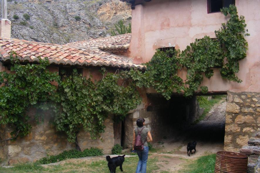 Una casa con parra junto al río,