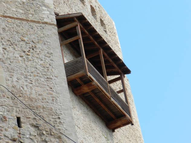 Balconada de madera del castillo medieval,