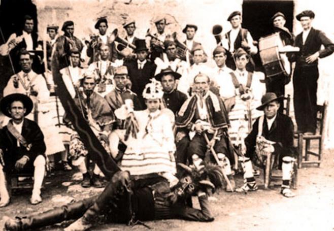 Los participantes en el Dance de Bello-1913. Solo se realizo ese año, pues parte del pueblo fue contrario a el y llamaron tontos a los danzantes. Uno de ellos comento "nos dicen tontos por danzar un año, ¿que seran entonces los de Odón (pueblo vecino)? ¡que bailan todos los años!. El hecho creo ciertos enfados en los de Odon que se enteraron de lo dicho. Dicen que hubo perdon, pero hay dudas, ya que años mas tarde ya en siglo XXI alguien parodiando a Trump dijo "Vamos ha hacer un muro entre Bello...