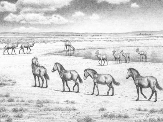 Imagen de los animales del mioceno superior y plio,