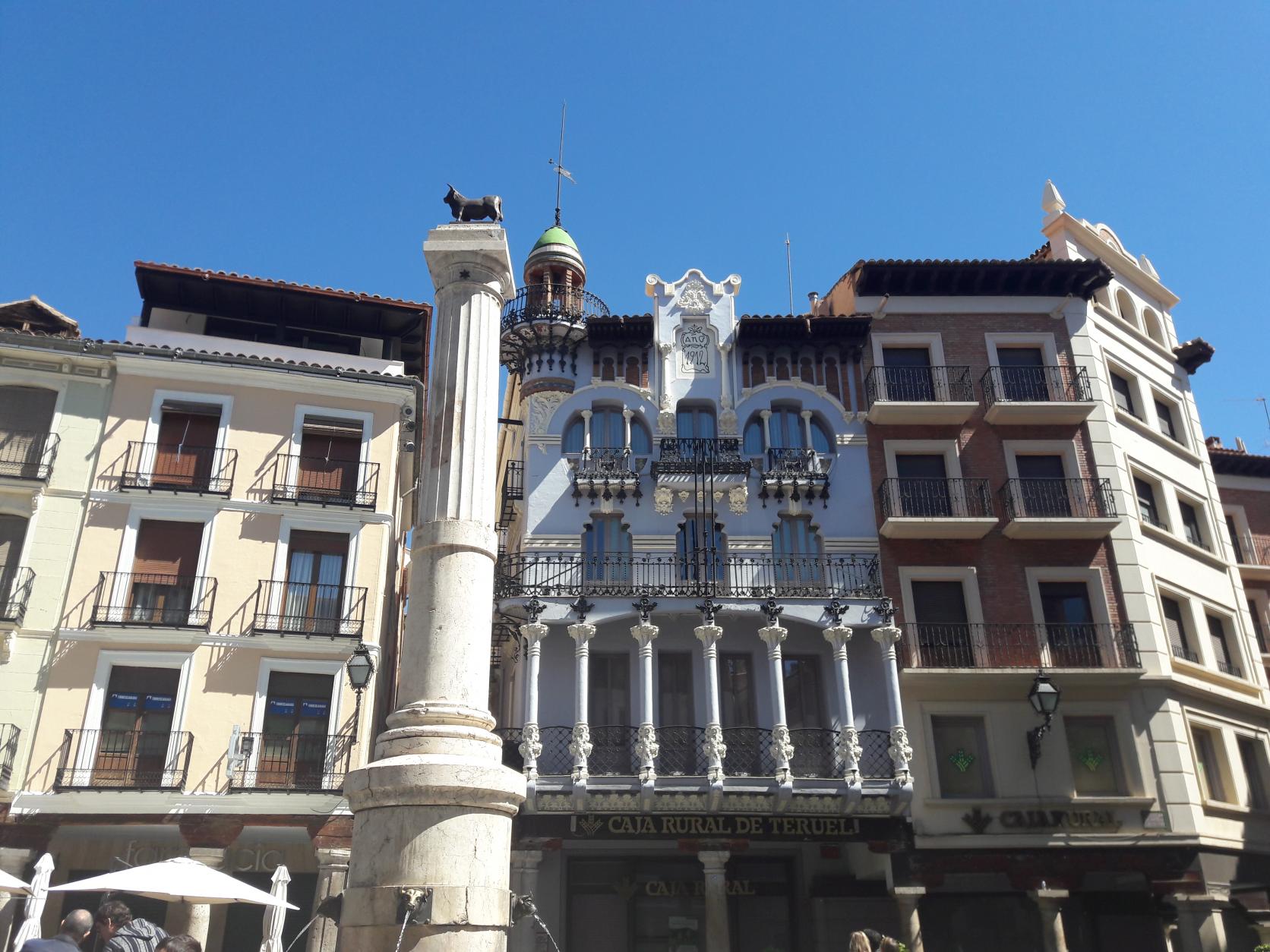 Casa el Torico con el Torico en primer plano,