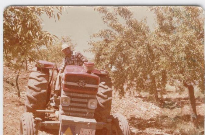 Roturando la tierra entre los almendros,