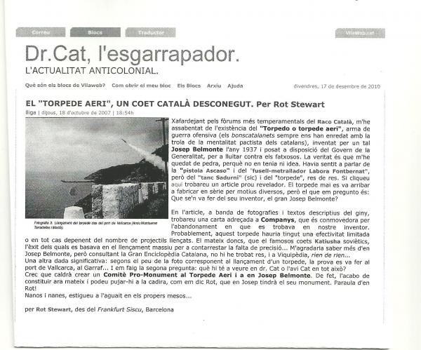 Esta foto, es una de las pruebas que hizo con exito D. Josep Belmonte Cañellas, marido de Rita Soriano Monterde, de Tramacastiel, sabemos que TV3 hizo un documental de armamento de guerra, y hablaron de su invento e inventor Josep Belmonte Cañellas, pero no localizaron a su mujer, para entrevistarla. gracias a todas las personas que se han interesado por su invento y al "Comitè Pro-Monument al Torpede Aeri i a en Josep Belmonte Cañellas"