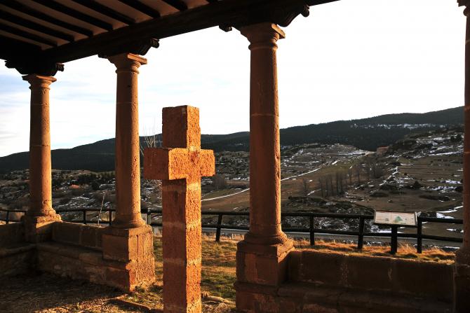 La Cruz del Loreto contemplando el paisaje nevado,