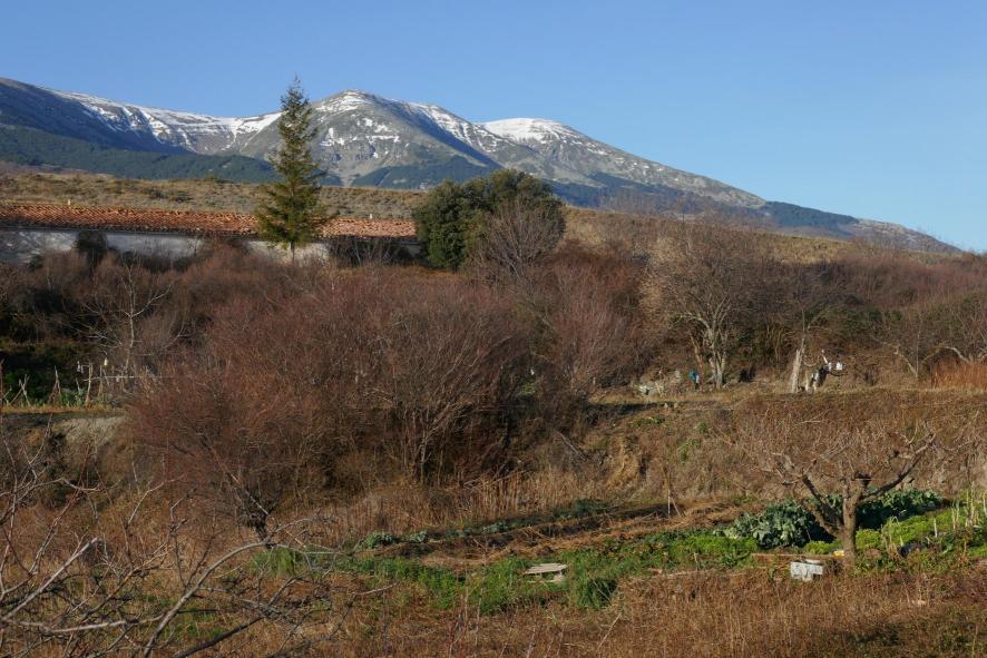 Huertas con el Moncayo de fondo,