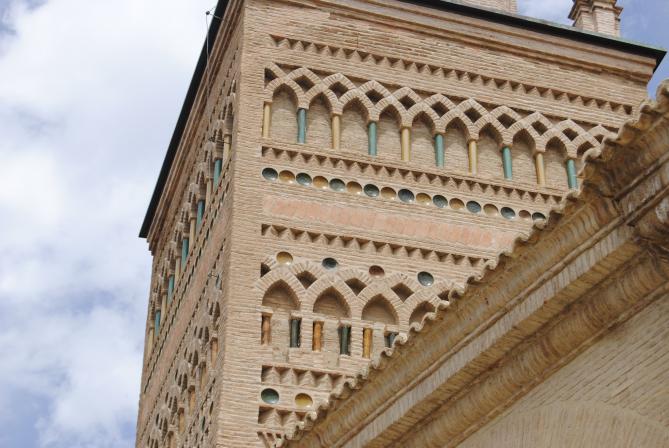 Detalle mudéjar de la fachada de la iglesia,