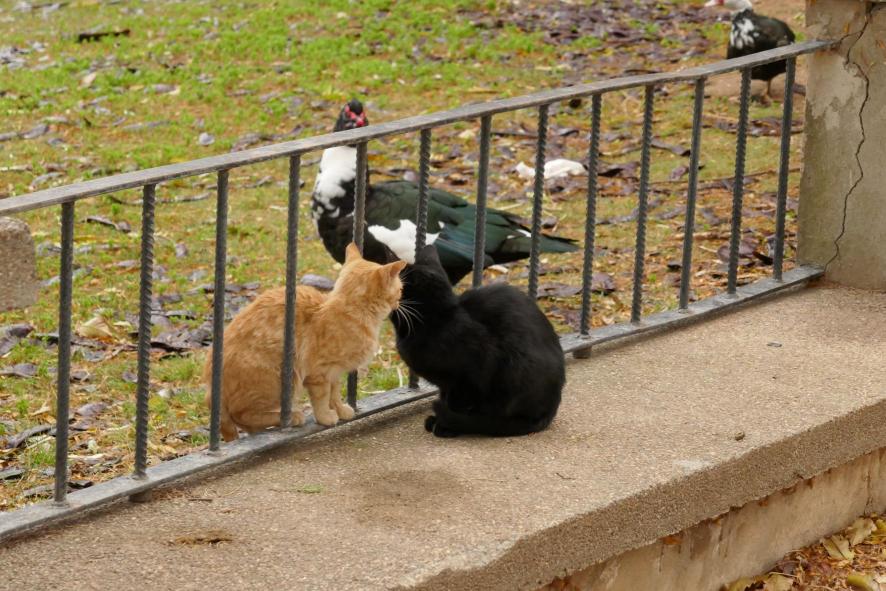 Vi cuatro gatos muy cerca de las acuaticas,