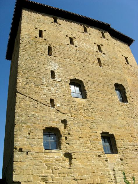 Cristóbal Guitart piensa que esta grandiosa torre pudo ser construida por artífices nórdicos (quizás normandos que vendrían con los caballeros que en 1064 asediaron Barbastro, o con la fracasada cruzada de 1073).