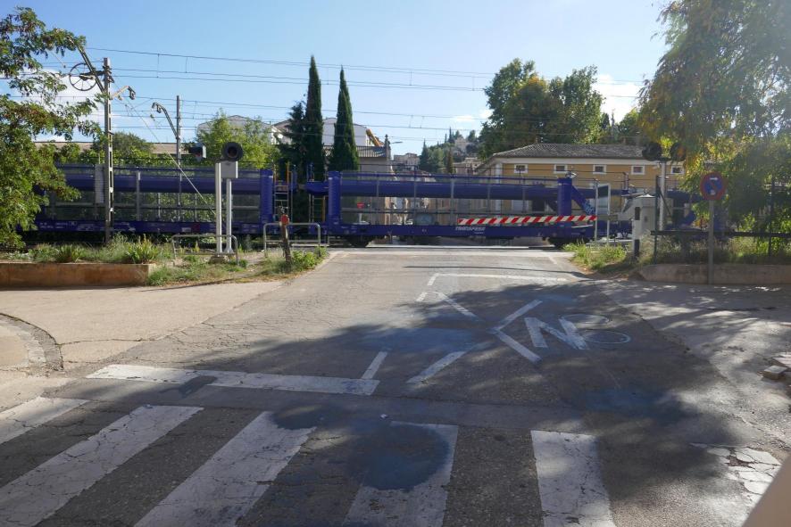 Un tren cruzando el pueblo,