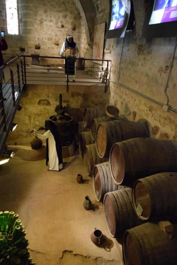 Recreación de una bodega en el Museo del Vino. Monasterio de Piedra,