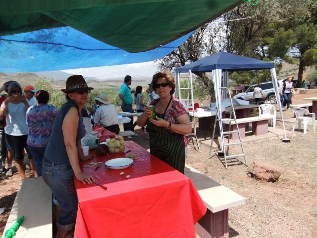 Mientras se va haciendo el rancho, Mª Carmen y Loli preparan las patatas.