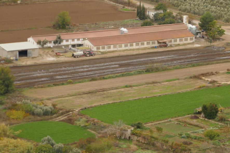 La forma clásica de una granja de pollos,