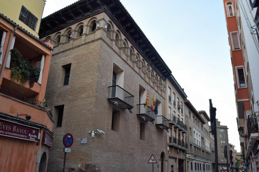 A la izquierda, el Palacio de Armijo, sede del Justicia de Aragón. Calle Lucero,