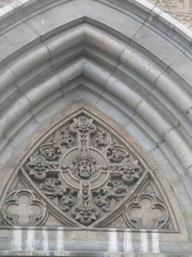 Cruz bajo un arco con la cara de Cristo,