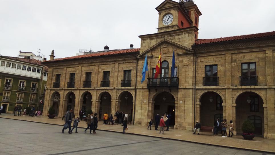 ayuntamiento fue construido en el siglo XVII, siguiendo los planos del arquitecto Juan de Estrada, que se inspira en el recién construido Ayuntamiento de la capital del Principado.