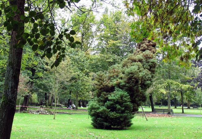 Árbol medio caído después de una tormenta,