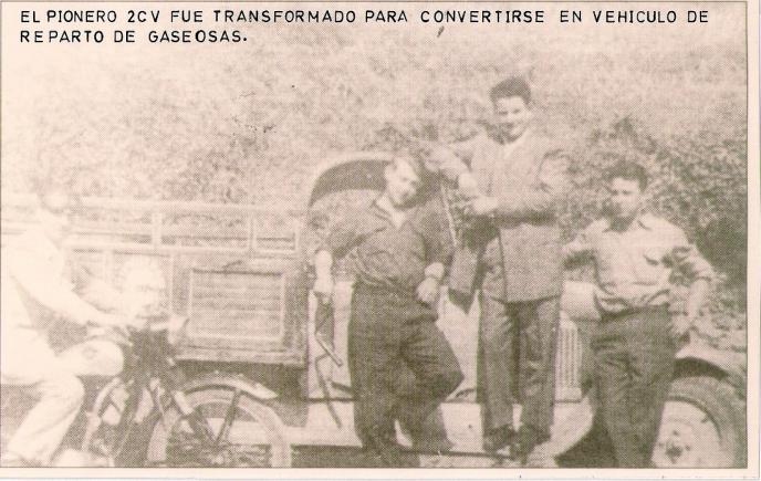 de izquierda a derecha... pelaez, villacorta y mino (rucao) sobre el estribo de la galana, un coche marca citroen convertido en camioneta, propiedad de d. luis diaz, dedicada al transporte de bebidas, de si fabrica de sifones, de ahi el mote o sobrenombre de esta buena y prolifica familia, conocida como los sifoneros