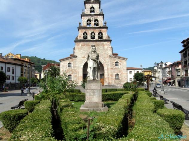 Don Pelayo con la iglesia al fondo,
