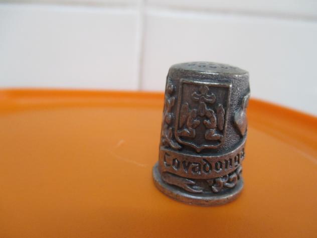 Dedal metálico con el escudo de Covadonga,