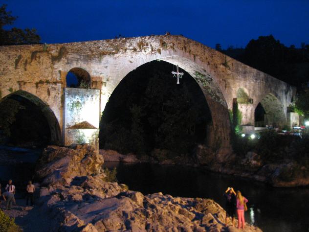 puente romano de cangas de onis, vista nocturna,