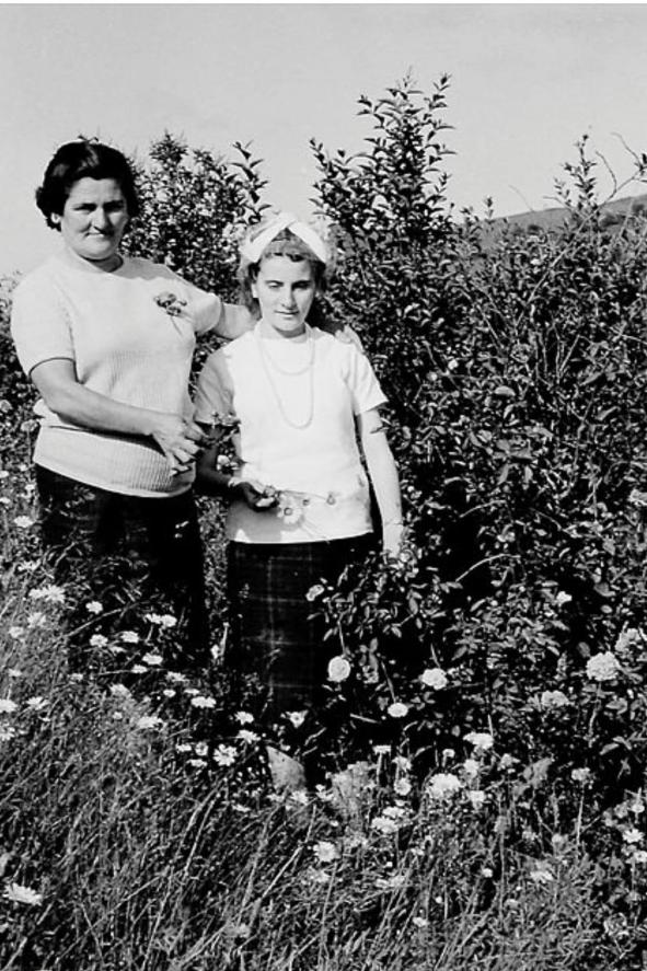 Mi madre Deli y mi guela Flora Fernández Llaneza en el campu (foto antigua),