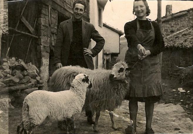 Fredo y Sagrario con les ovejes.