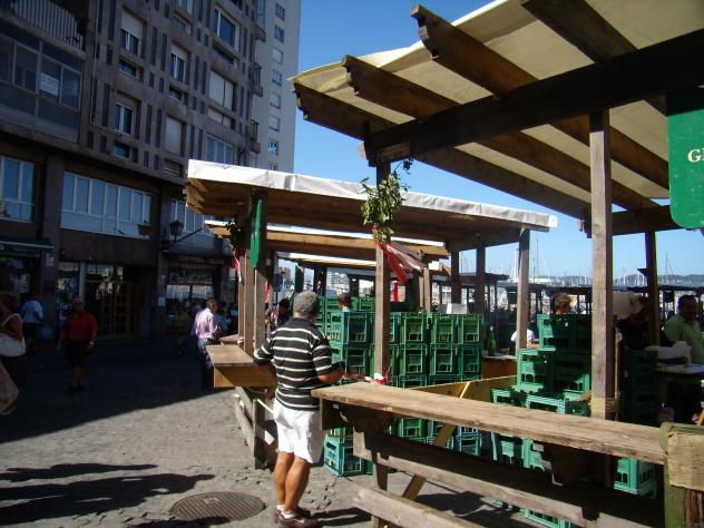 El Mostrador del improvisado Chigre y las cajas de sidras preparadas para su degustación. Un paisano guarda ya impaciente que den las doce y se inicie la