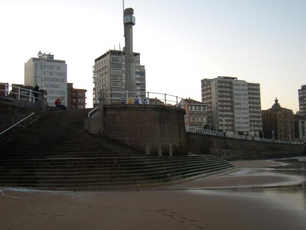 La soledad del arenal de San Lorenzo, en una tarde fría y de viento gélido, apenas se ven algunosd contumaces paseantes por el Paseo del Muro, cumplidores de su casi obligatorio paseo diario.