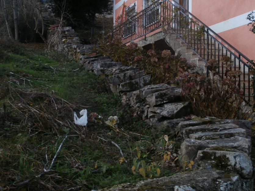Muro de piedra y escalera,