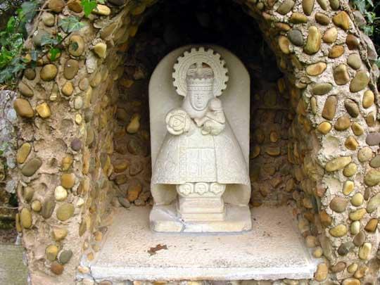 No te pases con la Santina. Ten cuidado que igual te cae una pedrada en la azotea para que no digas tantas barbaridades. Como darle fuego a todo lo relacionado con ella. Una barbaridad haber colocado esta imagen, la hornacina y el banco corrido en un entorno medieval. Es un insulto a la iglesia de San Juan ante portam latina y a su tejo. Si queremos honrar a nuestra querida Santina hay otras maneras más respetuosas y solemnes que esta forma. Esta es la virgen de covadonga que ta en la iglesia de priorio que guapina ye.