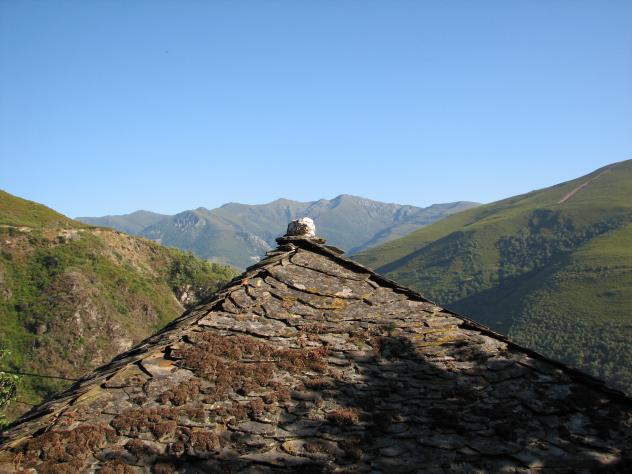 Tejado de pizarra (lousa) de un hórreo,