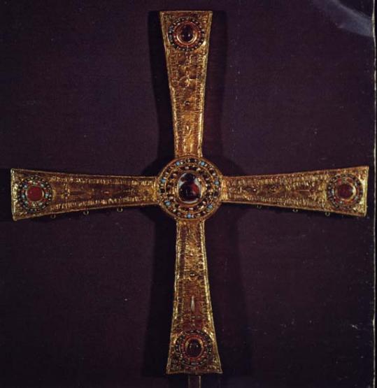 Pieza maravillosa, la más insegne de la Cámara Santa; es blasón de la ciudad , así como de la Santa IglesiaCatedral y de la Archiocesis de Oviedo. Fue labrada en el año de 808, por voluntad del Rey Alfonso II, el Casto, quien para ello donó, de su tesoro, las gemas y el oro necesario. Es una cruz de tipo griego y forma de suma esbeltez, con armoniosa proporción entre el disco central, cuyo diámetro es de 85mm., y los brazos. Sus dimensiones máximas son de 465mm. De alto, por 450mm. De ancho y 25... Quisiera saber que días hay mercadillo y en que calle pues soy de Madrid. El libro marca sociales tiene lo de la cronica silense de la cruz de los angeles. Queria saber cuando, en que epoca y año se narra la cronica silense. Porfavor la necesito para el viernes!plis