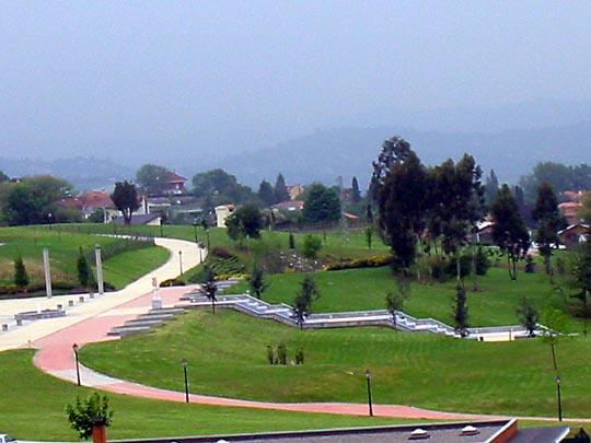 Esto es el parque del Oeste, la plaza donde empiezan las escalinatas de agua. Esta plaza tiene una fuente demasiado fea y pequeña para su dimensión. La plaza está rodeada de bancos que tienen vista al Monte Naranco. A la izquierda de la foto ( no se ve) está el nuevo campo de futbol, El Tartiere. Parece una ciudad muy bonita, cuando haya ido en septiembre os lo comentaré.