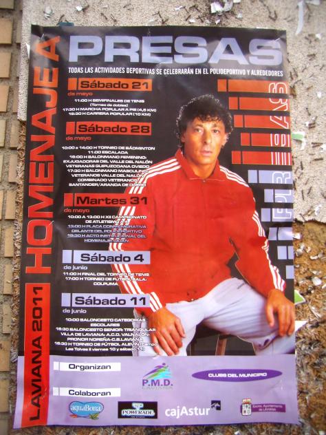 El lavianés PRESAS, fallecido hace poco tiempo, entrenador de atletismo en las instalaciones municipales lavianesas y especializado en preparar jóvenes atletas en la especialidad de lanzamiento de peso, recibe un merecido