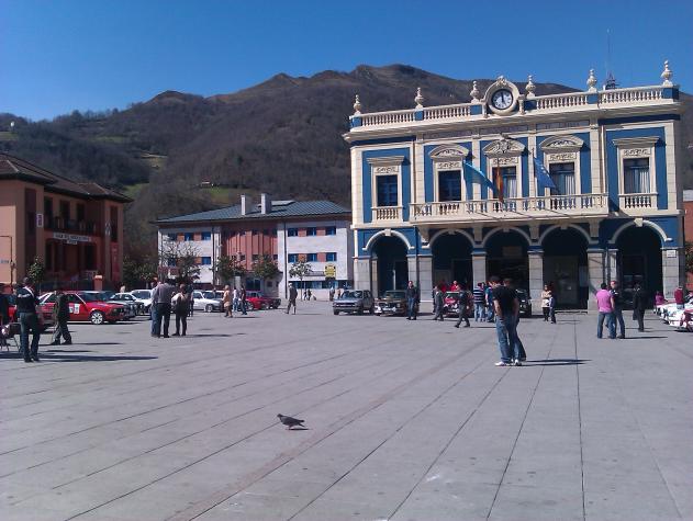 plaza del ayuntamiento de laviana,, dia de sol,