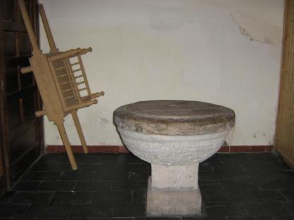 Confesionario y pila bautismal,