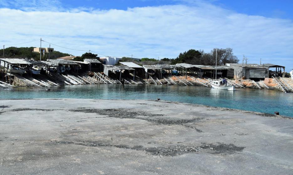 Vista del varadero o refugio de barcas pesqueras,