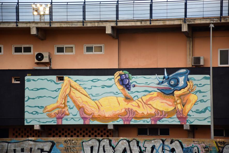 En una pared del campo de fútbol visto desde la calle Ramón y Cajal,