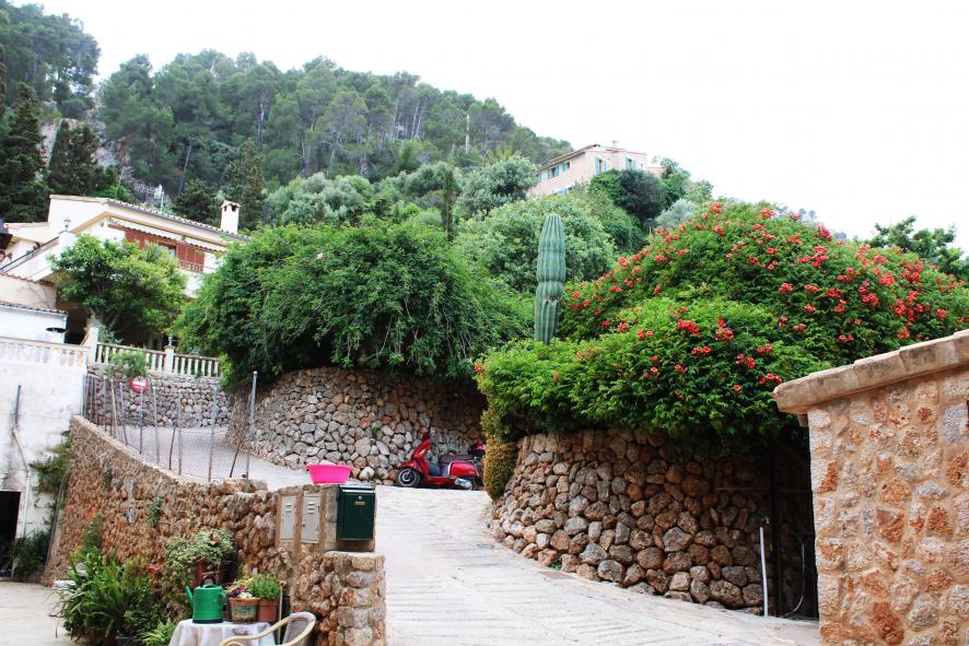 Cuesta arriba entre casas y jardines,