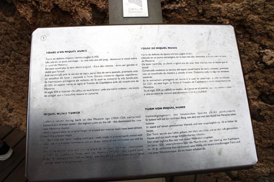 Cartel informativo de la torre de Miguel Nunis, CAPDEPERA