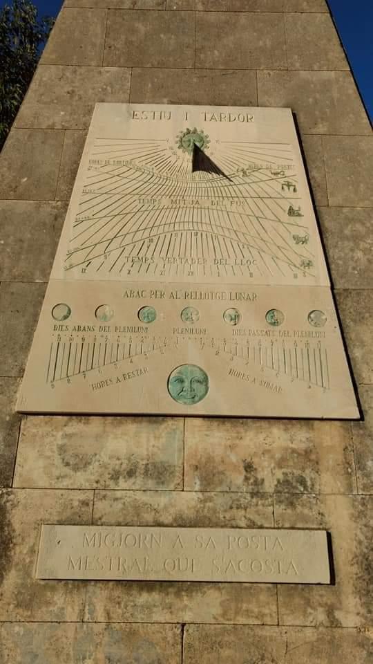 Tipo: Tetrafronte de inclinados sobre pirámide con calendario y tiempos medio y verdadero. En la fotografía solo se ve uno de los cuatro relojes, el orientado al sur.