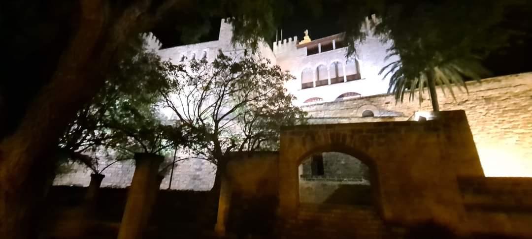 Palacio de la Almudaina con iluminación artificial,