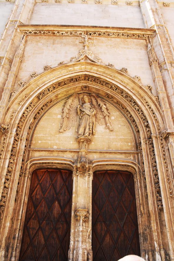 fachada de levante (este) donde se encuentra el portal mayor dividido en dos por un mainel o desvíos (un pilar o