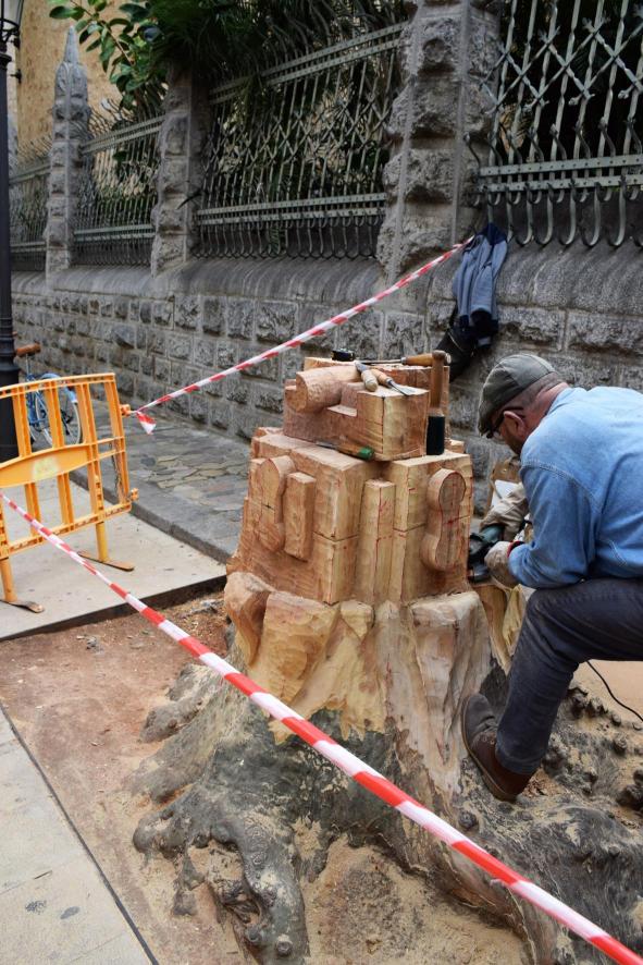 Curiosa talla en lo que queda de un gran árbol muerto,