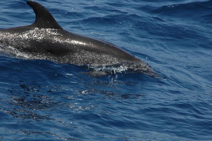 El delfín pintado o delfín manchado del Atlántico (Stenella frontalis).