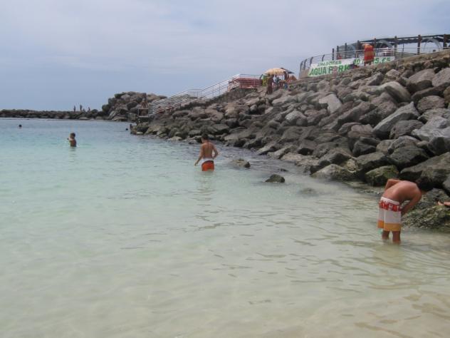 Pescando en las rocas,
