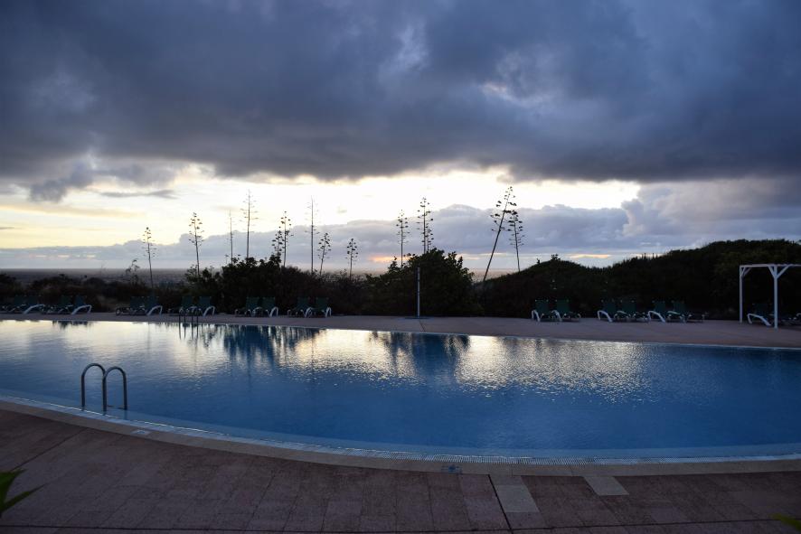 Amanecer junto a la piscina,