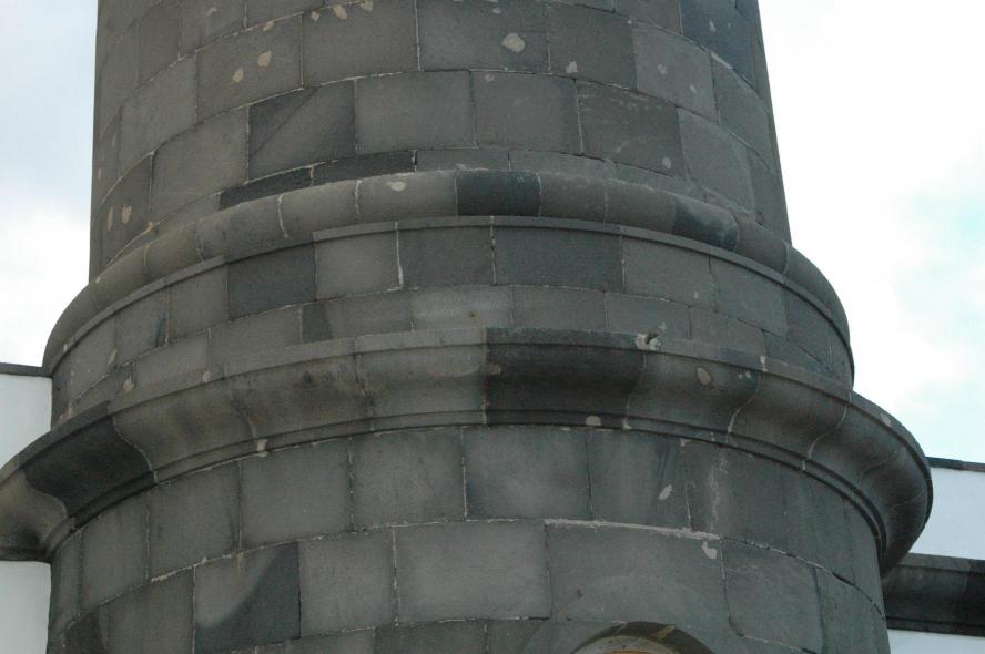 Detalle de la construcción del faro de piedra,