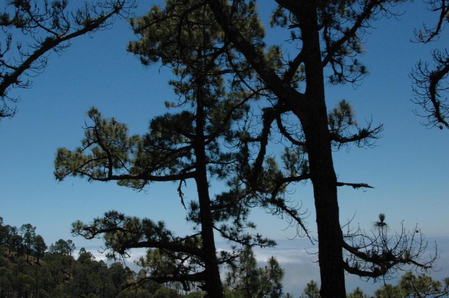 Detrás de los pinos se distinguen las nubes,