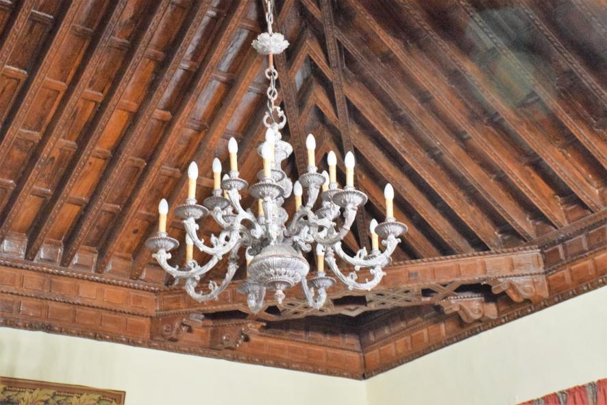 Lámpara colgada sobre la escalera principal de la Casa Salazar,